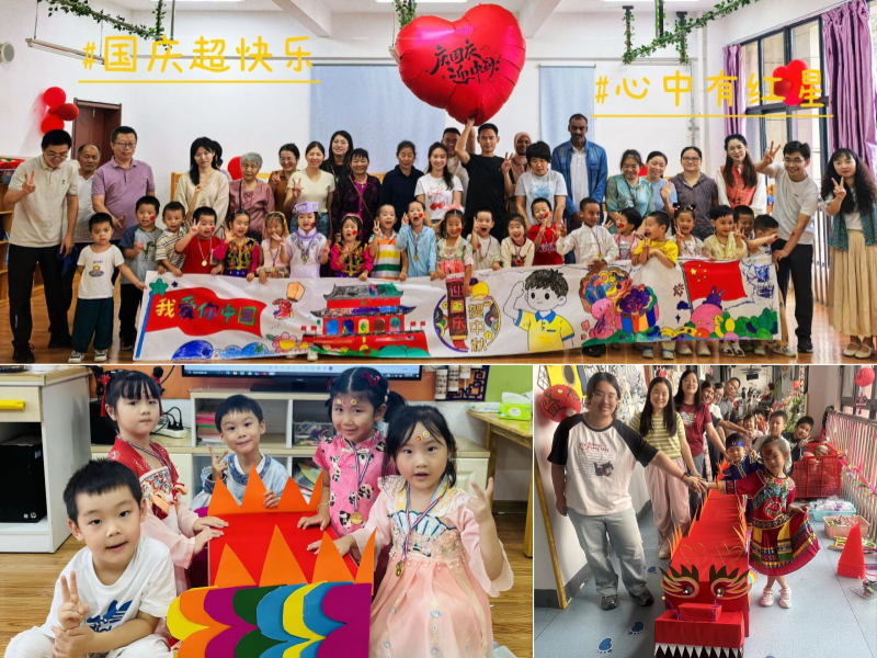 升旗仪式结束后,孩子们回到各自的班级,开启了一段创意与文化交织的亲子手工时光。小班亲子DIY,中班共绘长卷,大班携手制作中国龙,一幅幅作品既展现了节日氛围,也寄托着孩子们对祖国的美好祝愿。