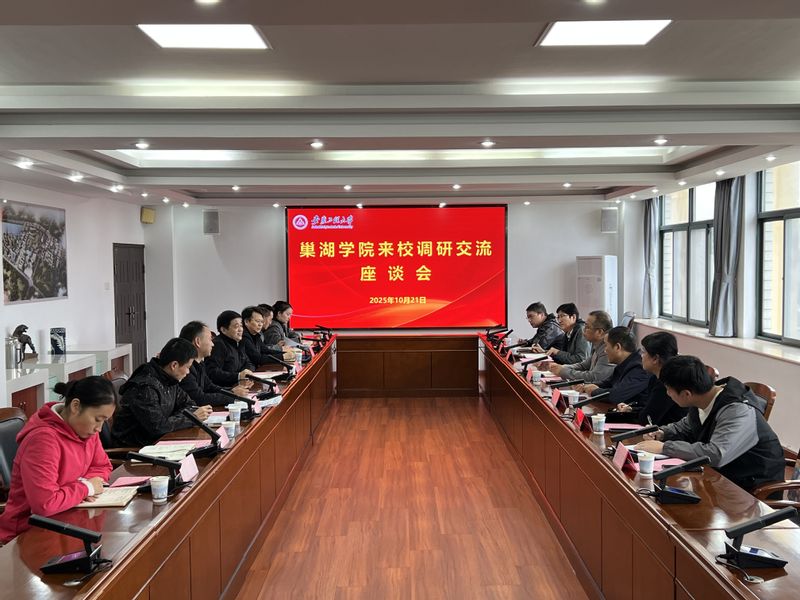 10月21日,巢湖学院党委委员、副院长周祥一行来校调研交流,校党委常委、副校长张开炳出席,后勤保障处相关人员参加了交流会。